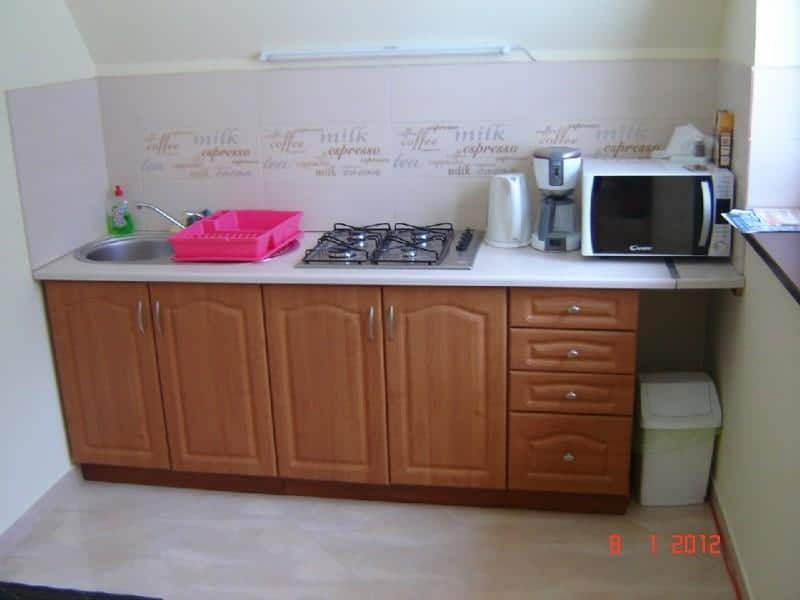 Oferujemy również przestrzeń do relaksu na świeżym powietrzu. W naszym ogrodzie znajdziecie altanę z miejscem na grilla, stół i krzesła, a także huśtawkę, zjeżdżalnię i trampolinę dla dzieci. Goście mogą korzystać z w pełni wyposażonej kuchni, gdzie można samodzielnie przygotować posiłki. Kuchnia zawiera kuchenkę gazową, mikrofalówkę, czajnik, ekspres do kawy oraz wszelkie niezbędne garnki, naczynia i sztućce.