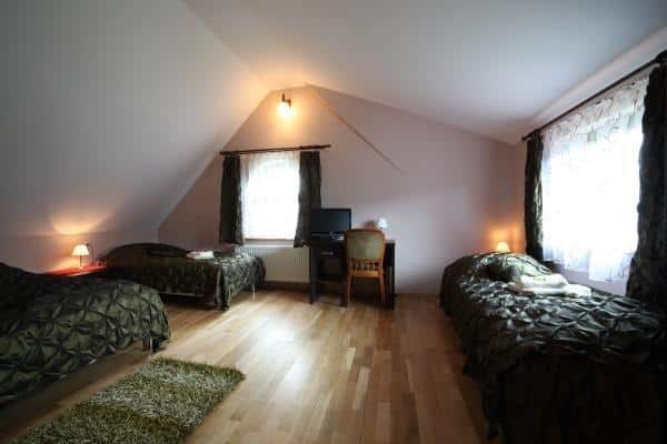 Nasza oferta obejmuje komfortowe pokoje z łazienkami oraz telewizją, co zapewnia wygodę i domową atmosferę. Każdego dnia serwujemy pyszne śniadania w formie szwedzkiego stołu oraz obiado-kolacje, które podkreślają rodzinną atmosferę naszego obiektu. Dla miłośników relaksu przygotowaliśmy przytulną salę telewizyjną z kominkiem oraz dostęp do komputera. Otaczający willę ogród z miejscami parkingowymi to idealne miejsce na chwilę wytchnienia.