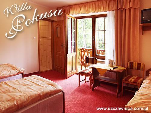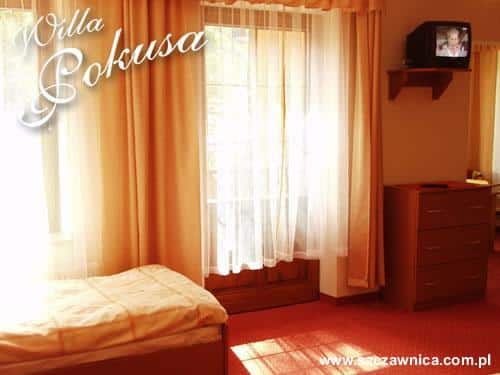 Willa Pokusa oferuje komfortowe zakwaterowanie dla 45 osób w pokojach jedno-, dwu-, trzy- i czteroosobowych. Każdy pokój jest przytulnie urządzony i wyposażony w telefon oraz telewizję satelitarną, co zapewnia doskonałe warunki do wypoczynku po dniu pełnym wrażeń.