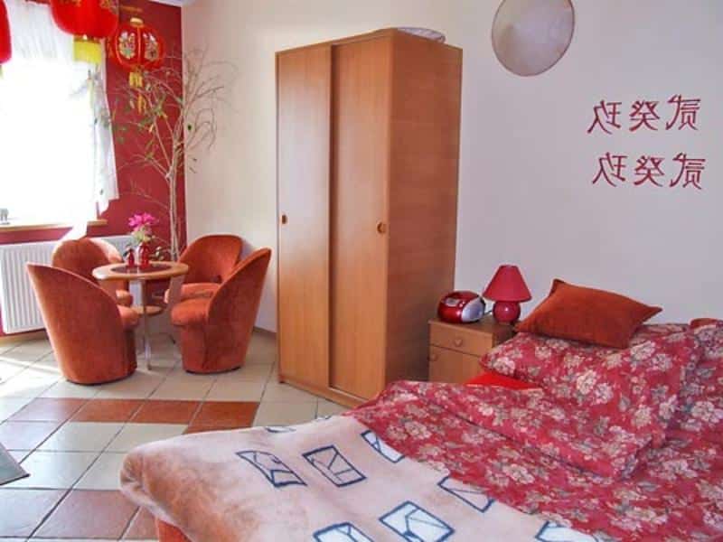 Dla większych grup oferujemy przestronny apartament o powierzchni 42 m², składający się z dwóch pomieszczeń. Apartament jest wyposażony w: