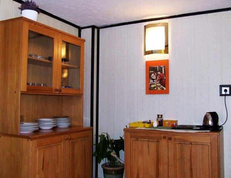 – Jadalnia z telewizorem, lodówką, kuchenką mikrofalową, czajnikami elektrycznymi oraz kompletem naczyń i sztućców,