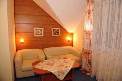 Dodatkowo, dysponujemy dwoma przestronnymi apartamentami. Wszystkie pokoje są wyposażone w czajnik bezprzewodowy i kompletny zestaw naczyń, co zapewnia wygodę podczas pobytu.