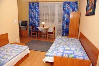 Oferujemy komfortowe noclegi w pokojach 2-, 3- oraz 4-osobowych, z których każdy posiada: