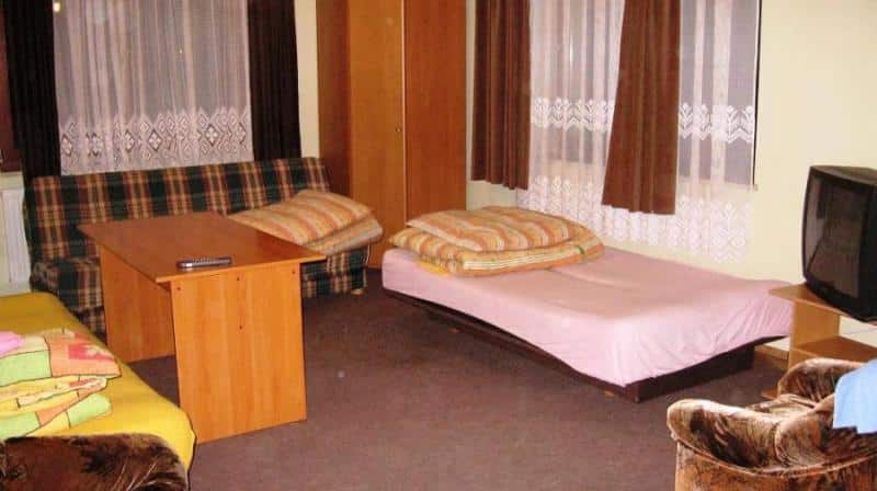 Zapraszamy do naszego przytulnego obiektu, który oferuje komfortowe zakwaterowanie dla każdego. Dysponujemy różnorodnymi pokojami, które pomieszczą od jednej do pięciu osób, co łącznie daje około 35 miejsc noclegowych. Każdy pokój wyposażony jest w prywatną łazienkę oraz telewizor, co zapewnia wygodę i relaks po dniu pełnym wrażeń.