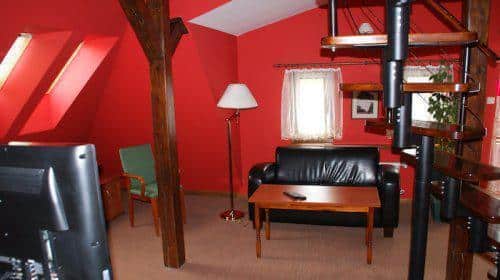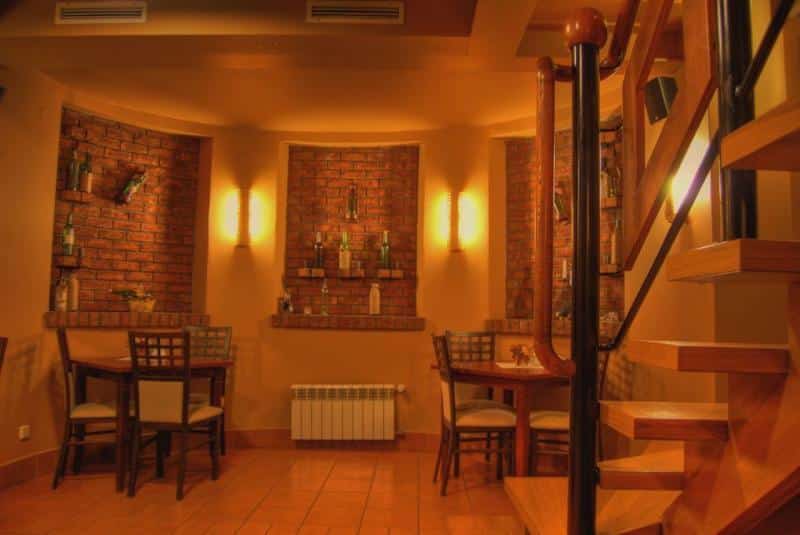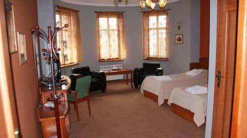 Każdy pokój wyposażony jest w lodówkę oraz łazienkę z wanną lub prysznicem, a niektóre z nich posiadają także przytulną część wypoczynkową. Śniadania serwowane są w naszej restauracji, gdzie można skosztować regionalnych i tradycyjnych potraw kuchni polskiej. Dla miłośników wina przygotowaliśmy bar w podziemiach pensjonatu, oferujący szeroki wybór trunków.