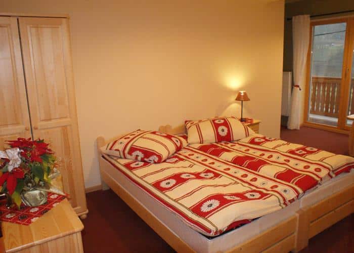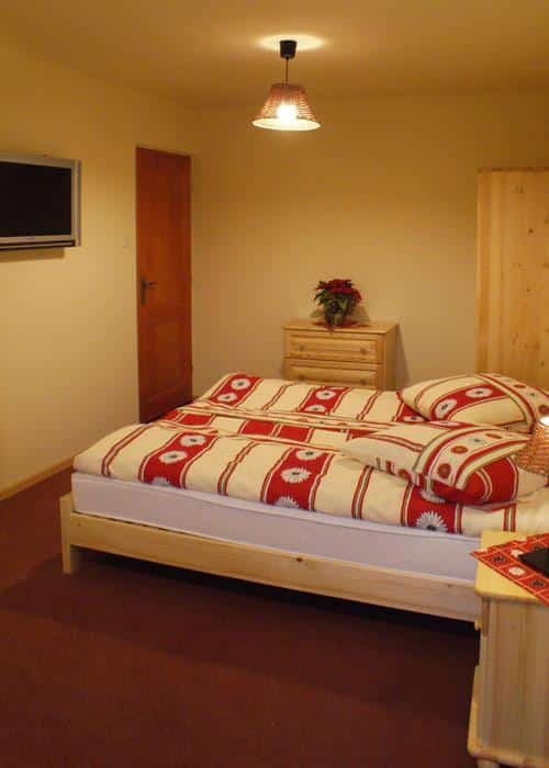 Nasze pokoje są urządzone w stylu drewnianym, co nadaje im wyjątkowy, ciepły klimat. W każdym pokoju znajdą Państwo łóżko małżeńskie lub dwa łóżka, które można połączyć w jedno. Dodatkowo, w pokojach znajdują się szafa, komoda, stolik oraz krzesła lub rozkładana kanapa.
