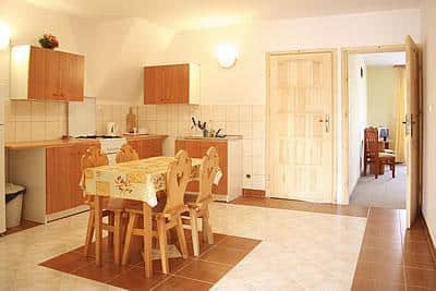 Na pierwszym i drugim piętrze znajdują się przestronne aneksy kuchenne, w pełni wyposażone w lodówki, kuchenki i mikrofalówki, co umożliwia samodzielne przygotowywanie posiłków. Dla chętnych oferujemy również możliwość zamówienia posiłków na życzenie.