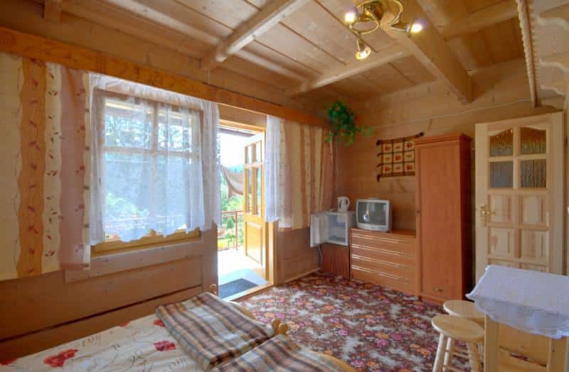 Każdy pokój wyposażony jest w łazienkę i telewizor. Do dyspozycji gości oddajemy także jadalnię w stylu góralskim, gdzie można samodzielnie przygotować posiłki. Wyposażenie jadalni obejmuje: