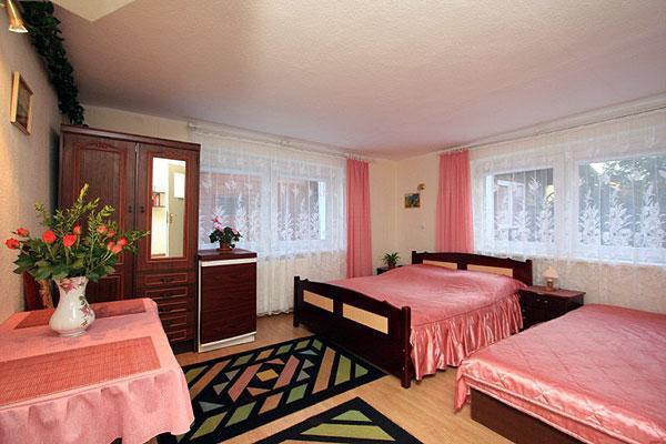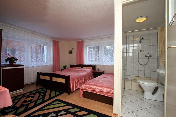 Oferujemy komfortowe pokoje 2-, 3- i 4-osobowe, wyposażone w balkony lub tarasy, idealne do wypoczynku na świeżym powietrzu. W każdym pokoju znajdziesz łazienkę z prysznicem, aneks kuchenny z lodówką, telewizję kablową, radio oraz sprzęt plażowy, co zapewnia wygodę podczas pobytu. Na terenie posesji znajduje się zamykany parking, gwarantujący bezpieczeństwo Twojego pojazdu.