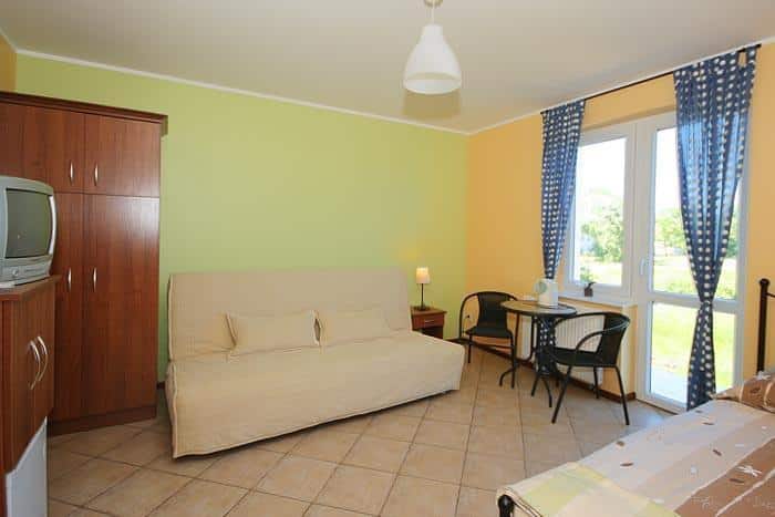 W naszych pokojach znajdą Państwo wszystko, czego potrzeba do wygodnego pobytu. Telewizory, lodówki, czajniki, naczynia i sztućce są standardowym wyposażeniem. Dodatkowo, zapewniamy też koce plażowe i parawany na życzenie. Jeśli potrzebują Państwo dodatkowego miejsca do spania, istnieje możliwość dostawienia lekkiego łóżka.