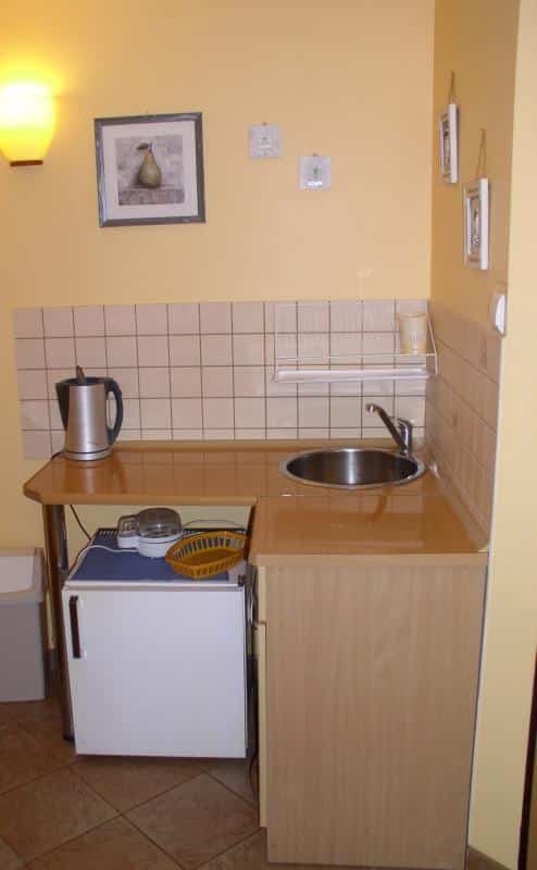 – **Pokój dwuosobowy** z aneksem kuchennym, łazienką i balkonem,