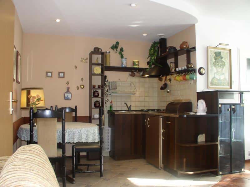 – **Pokój czteroosobowy** z pełni wyposażoną kuchnią, aneksem jadalnym, łazienką i dużym tarasem,