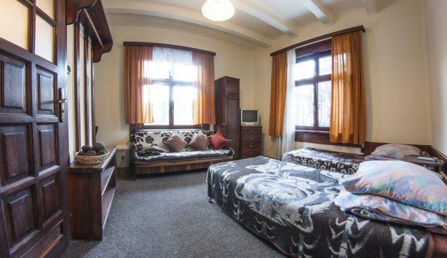 W Willi “Wacława”, która znajduje się blisko centrum (około 5 minut od Krupówek), oferujemy 25 miejsc noclegowych. Mamy do dyspozycji 5 pokoi dwu- i trzyosobowych z umywalką, z toaletą i łazienką na tym samym piętrze. Ponadto, posiadamy 3 pokoje z pełnym węzłem sanitarnym i telewizorem oraz 1 dwupoziomowy apartament dla 4-6 osób z pełnym węzłem sanitarnym i telewizorem.