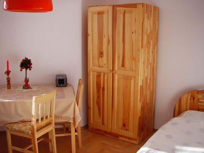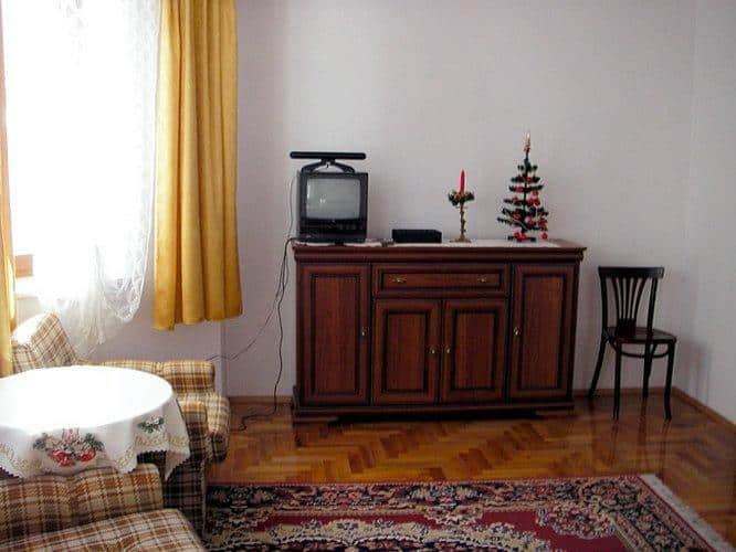 Nasza oferta obejmuje kameralne i komfortowe apartamenty. Pierwszy z nich pomieści od 7 do 10 osób i składa się z dwóch sypialni, pokoju dziennego, holu z kominkiem oraz dwóch łazienek. Drugi apartament to przytulny pokój dla 2-3 osób z przedpokojem i łazienką. Wszystkie pokoje są wyposażone w telewizory i radia, aby umilić czas naszym gościom.