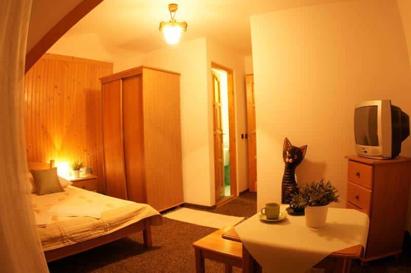 Zapraszamy do naszego przytulnego domu, gdzie czeka na Państwa komfortowy wypoczynek w jednym z 23 dostępnych miejsc noclegowych. Oferujemy przestronne pokoje 2-, 3- i 4-osobowe, z których część urządzona jest w urokliwym stylu regionalnym. Niektóre z pokoi posiadają balkony, z których można podziwiać okoliczne widoki. Każdy pokój ma własną łazienkę z całodobowym dostępem do ciepłej wody, co zapewnia wygodę i prywatność.