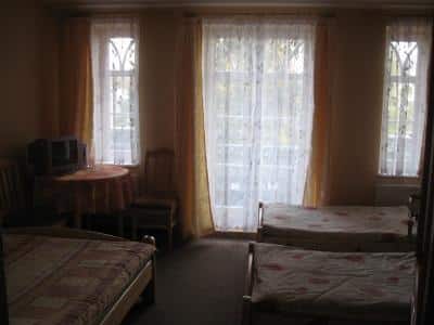 Nasze pokoje są komfortowo wyposażone, oferując jedno- lub dwuosobowe łóżka, stół, krzesła, szafę oraz telewizor z kablówką. Dla wygody gości dostępne są również czajnik elektryczny, szklanki i łyżeczki, a na życzenie także talerze, noże i widelce. Pokoje mogą pomieścić od 1 do 5 osób, a łazienki z prysznicem znajdują się na korytarzu, blisko pokoi. Goście mogą korzystać z bezprzewodowego Internetu, a także zaparkować samochód na naszej posesji.