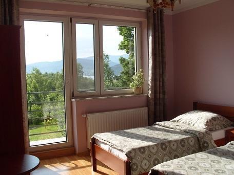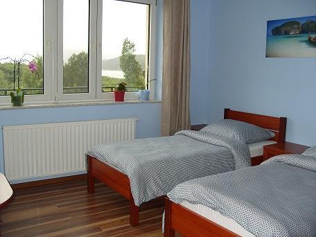W obiekcie dostępnych jest 9 miejsc noclegowych w 4 przestronnych pokojach dwuosobowych oraz dodatkowe 2 miejsca w salonie. Na życzenie gości możemy dostosować liczbę miejsc noclegowych. Dwa pokoje mają wyjście na duży taras widokowy, idealny na poranną kawę z widokiem na jezioro. Kuchnia jest w pełni wyposażona w niezbędny sprzęt, taki jak lodówka, kuchenka gazowa, czajnik i akcesoria kuchenne. Łazienka z prysznicem oraz osobne WC zapewniają dodatkowy komfort.
