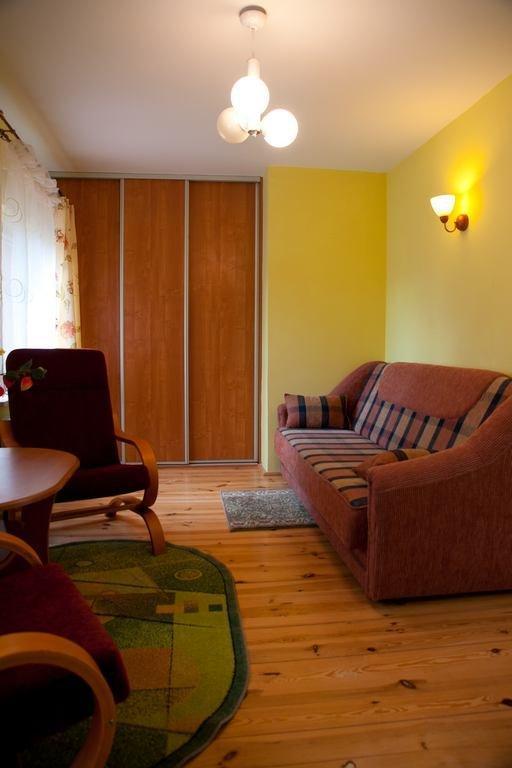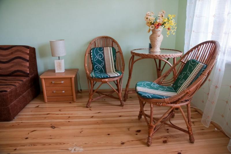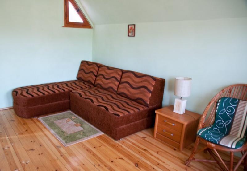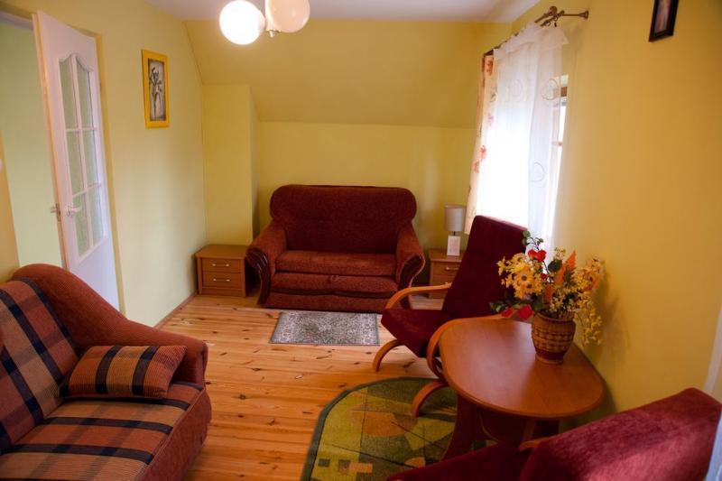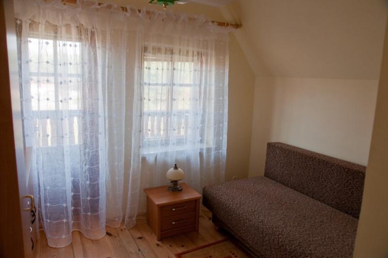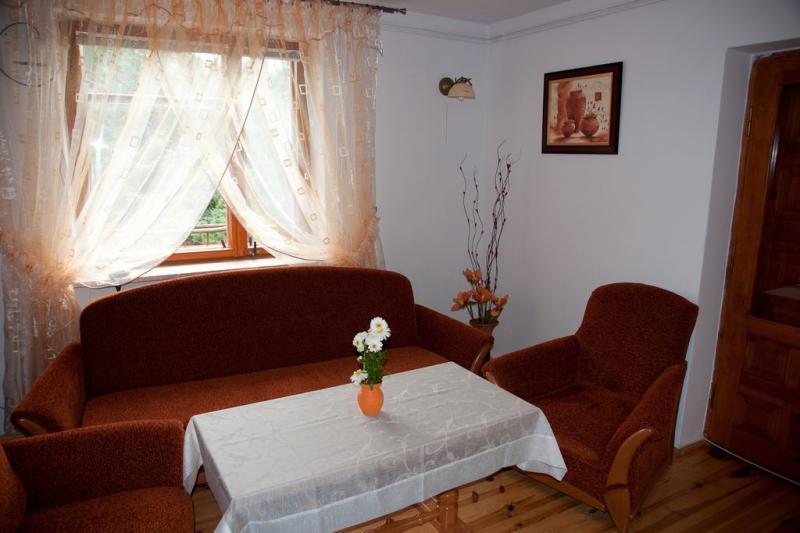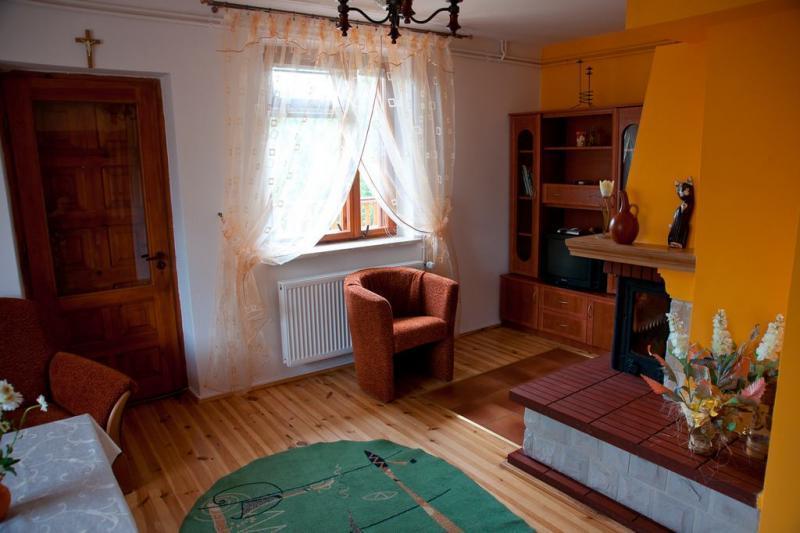 Do dyspozycji Gości jest piętrowy dom, który oferuje wiele udogodnień. Na pierwszym piętrze znajdują się trzy sypialnie, które mogą pomieścić łącznie sześć osób (z możliwością zakwaterowania maksymalnie ośmiu osób). Ponadto, w domu znajduje się salon z kominkiem, dwie łazienki oraz dobrze wyposażona kuchnia. Z tarasów można podziwiać piękny widok na dolinę Wieprza i pobliski las.